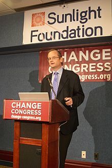 Despite having decided to forgo running for Congress himself, Lessig remained interested in attempting to change Congress to reduce corruption.[20] To this end, he worked with political consultant Joe Trippi to launch a web based project called "Change Congress".[21] In a press conference on March 20, 2008, Lessig explained that he hoped the Change Congress website would help provide technological tools voters could use to hold their representatives accountable and reduce the influence of money on politics.[22] He is a board member of MAPLight.org, a nonprofit research group illuminating the connection between money and politics.
