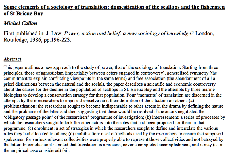 Aufsatz Callon: Kamm-Muscheln (ANT) (https://bscw.uni-wuppertal.de/pub/nj_bscw.cgi/d8022008/Callon_SociologyTranslation.pdf)