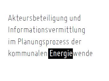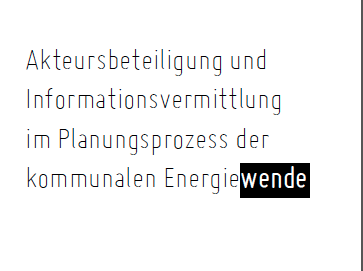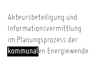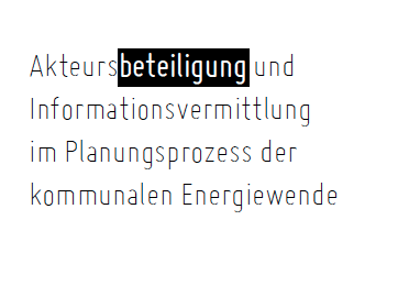 "Akteursbeteiligung und Informationsvermittlung im Planungsprozess der kommunalen Energiewende"